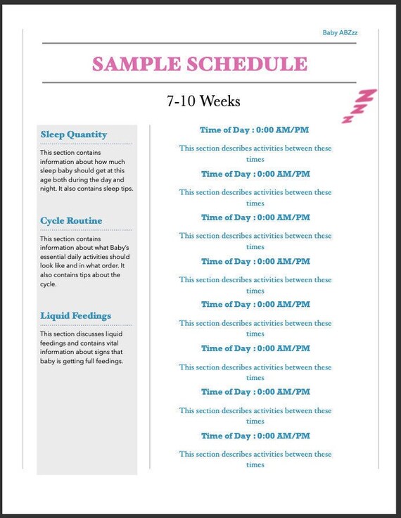 Sample Schedule For 7 10 Week Old Babies Etsy